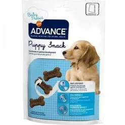 Les Advance Puppy Snack sont sont de savoureux biscuits qui participent à la bonne croissance du chiot grâce à l’apport en nucléotides, en DHA, en Oméga 3 et d’inuline à effets prébiotiques. Ils enforcent le système immunitaire et la fonction cérébrale des chiots.