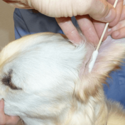 Même sur un grand chien, le diamètre de la portion profonde du conduit auditif (près du tympan) est resserré, si bien qu’ un contact involontaire avec le tympan est virtuellement impossible sur un chien éveillé.