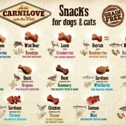 Les friandises Semi-Humides de chez Carnilove sont des friandises moelleuses à la viande fraîche de gibier avec herbes aromatiques soigneusement sélectionnées. Sans céréales ni pommes de terre et sans colorants artificiels.