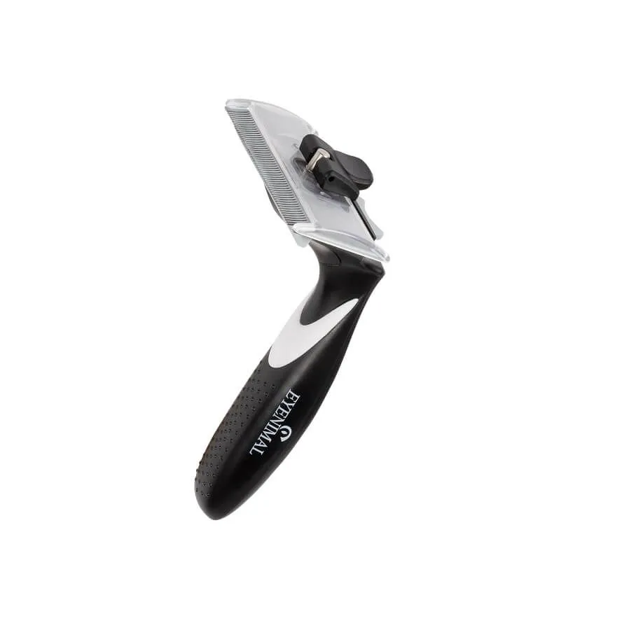 La brosse de chez Eyenimal est anti-mue, car elle permet d’Ă©liminer jusqu’Ă 90% des poils morts dus en grande partie Ă la mue et donc aux saisons.