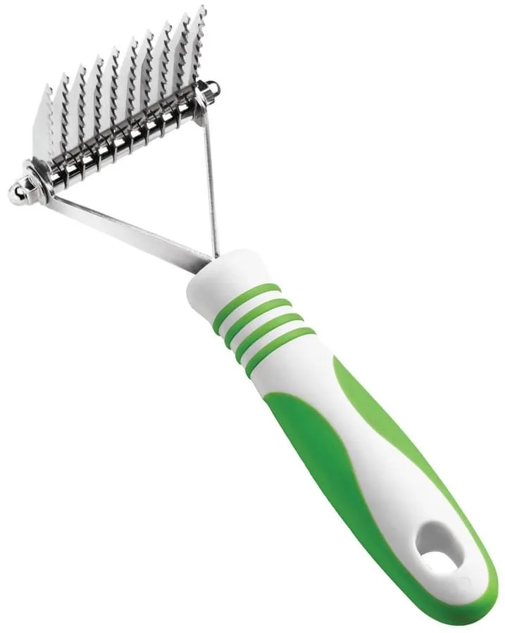 Le Peigne coupe noeuds de chez Gloria est un peigne qui permet de diviser les noeuds serrés et retirer (en les coupants) les poils morts du sous poils de votre chien.