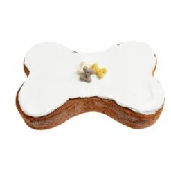 Ce kit gâteau d’anniversaire vous permettra de prĂ©parer un joli gâteau Ă la vanille en forme d’os avec glaçage et des petites friandises en dĂ©coration pour l’anniversaire de votre chien.